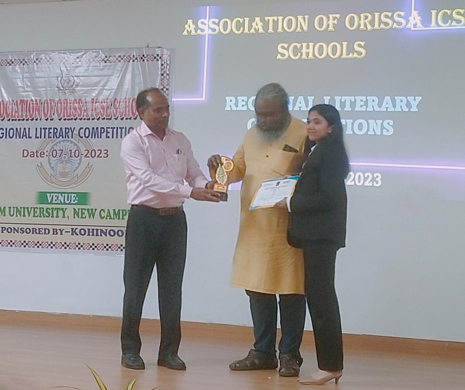 All Odisha ICSE schools conduct various literary activities every year to create aplatform to promote critical thinking creativity and communication skills which are essential for success in both academic and professional settings. It included Debate, Declamation Poetry recitation, Storytelling, Drawing, News reading, and Quiz where our talented students participated at zonal level and among them Siddhima Mishra brought laurels to our school by participating in regional level and then at National level.