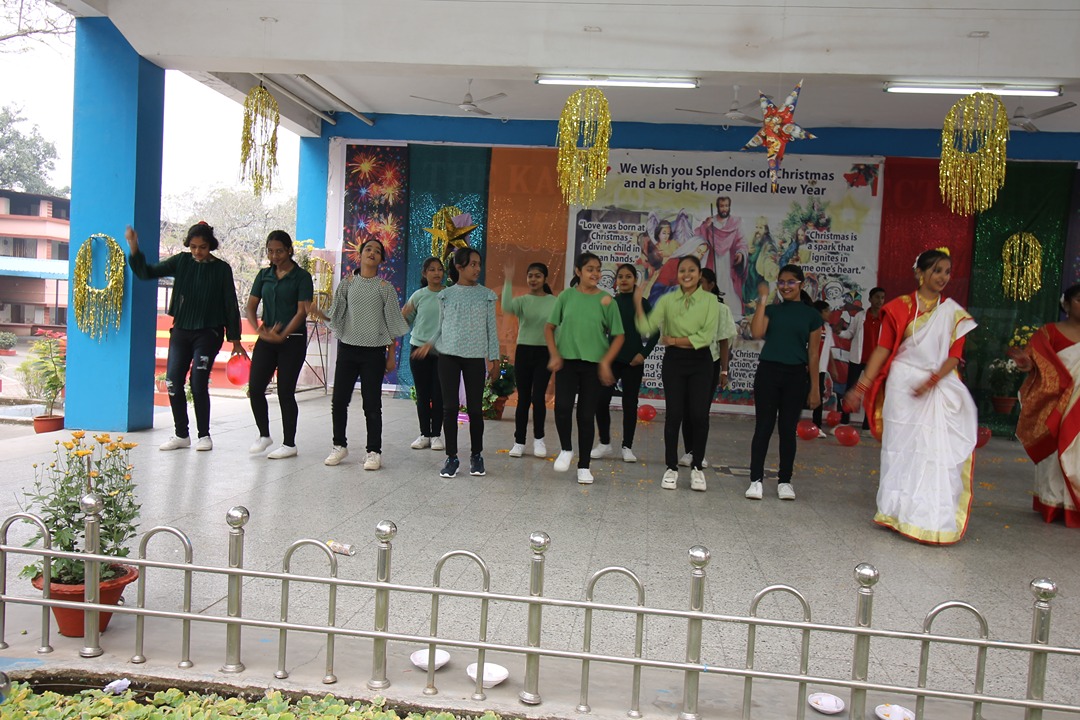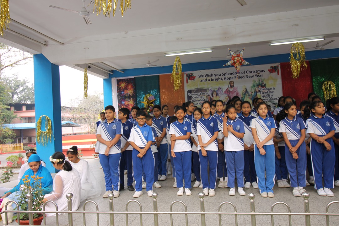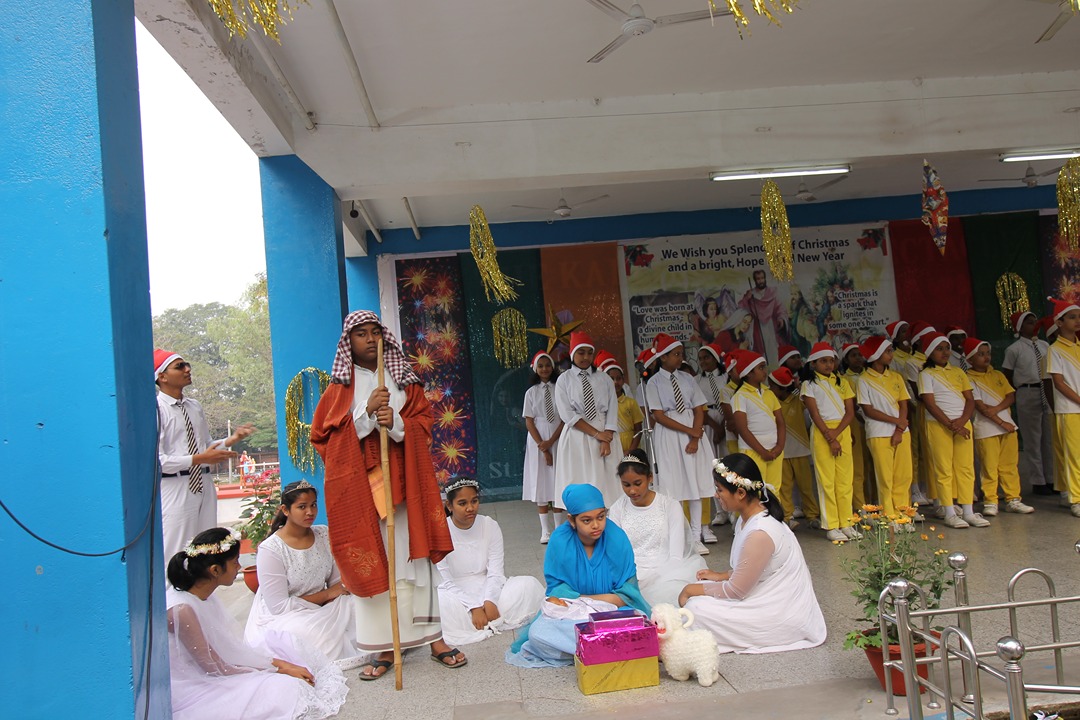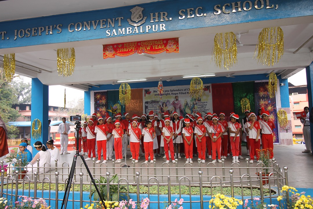 The year of 2023 was brought to a warm end in St. Joseph’s Convent Higher Secondary School, with a Christmas Celebration on 23rd December. All the teaching as well as non- teaching staff members were a part of the celebration which began on the cool morning,on the assembly ground. The ornately decorated school stage excited everyone into the Christmas mood. The assembly prayer was conducted by the students of class XI, each ofwhom brought a kind message for the day. The prayer was ended by the school principal,Sister Navya CSJ, with a stress and hope on the earliest possible settlement of the Israel-Palestine Conflict. As is the tradition, the reenactment of the Nativity scene began with the synchronized narration of the event. Young Christian boys and girls from Class V to IX performed on stage in various key roles pertaining to the Birth of Lord Jesus Christ, Gloria Annunciation by the angels, Visitation of the Three Wise Kings of Orient and the Christmas Message of Peace for the year. It was a delightful thing for the audience, both young and old, to revisit the events which took place over two thousand years ago. The entire stage event was interlaced with soothing instrumental music, themed on Christmas. Backstage, students also provided playback voiceover for the characters on stage.
