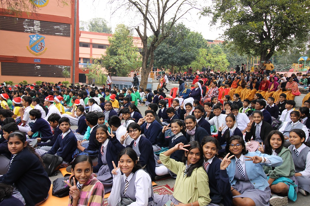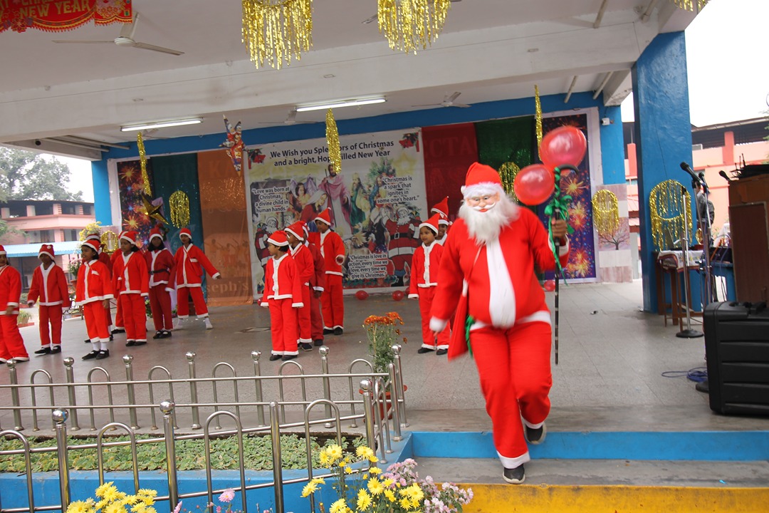 Inter-house Christmas Carol singing competition, followed thereafter, added to the excitement. It was a first, for every child of the school to be a part of the celebration. Students of the Gandhi House gave a memorable rendition of ‘Mary did you know’, Aurobindo House chimed in with ‘Its Christmas, its Christmas’ and ended their performance with a cute dance. Radhakrishnan House chorused to the hymn of ‘Gloria! In excelsis Deo’ and the House of Tagore sang ‘Joy to the World’ and ‘Jingle Bells’. The competition was neck to neck but there could be only one winner. It was the Radhakrishnan House which bagged the first prize.The Carol singing was followed by a Christmas-themed Fusion dance by selected students from high school. Best for the last, the celebration proceeded towards the most anticipated personality of the day, Father Christmas, lovingly known as Santa Claus. This year, Santa made a grand entry on a Bullet motor bike, leaving everyone awestruck. The children were thrilled, seeing their Christmas hero distributing sweets and love to everyone. The pretty smiles and cherishable memories of the year 2023, became the essence of the last day before a relaxing Christmas vacation of over ten days. On a final note of words, the school principal thanked the entire team behind the successful event. Additionally, it was mentioned that although the year may have ended, it gave hope and strength of a better tomorrow in the new year of 2024.